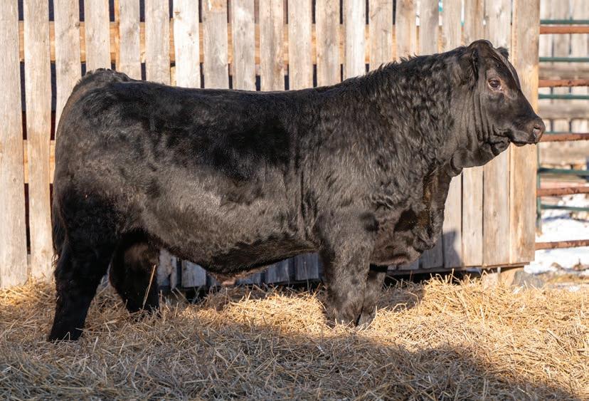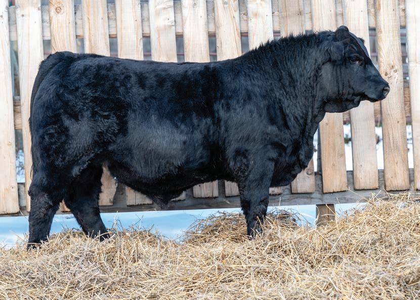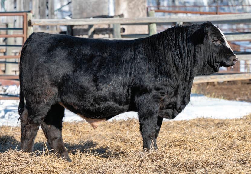 Nolan is the only black baldy bull in our offering. While he is one of the younger bulls he has a lot to offer as he comes from a great cow family with exceptional feet and udders. He has some very notable black Simmental bulls in his genetics including Gold Key, Riddler, Full Throttle and Club King. I would be keeping as many of his daughters as possible.
