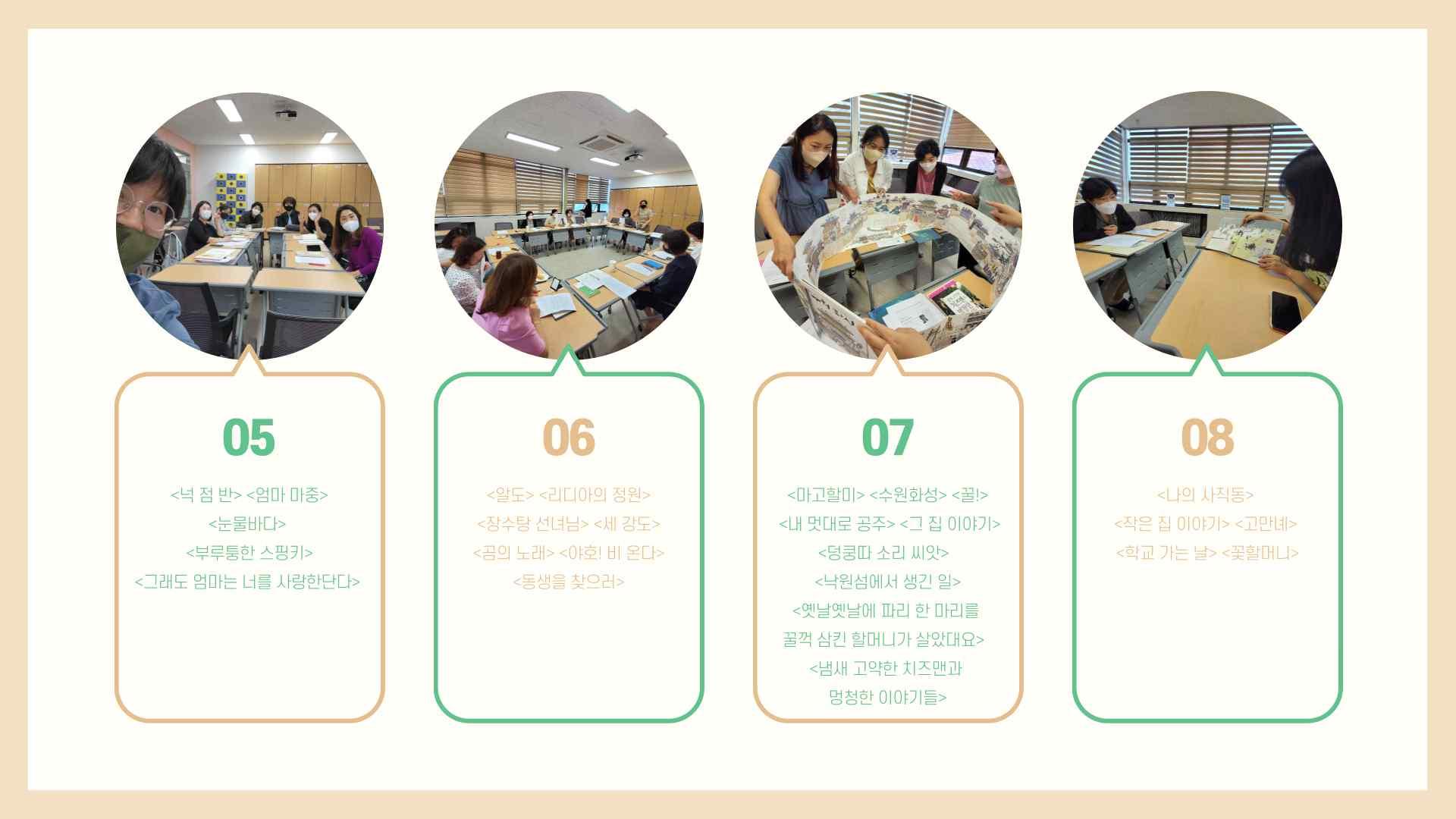 추천목록집을중심으로작가별로분류,정리하고그중에각자가읽고싶은책들 을선정,협의해서읽고토론하는과정을통해꼭다시아이들과읽어보아야