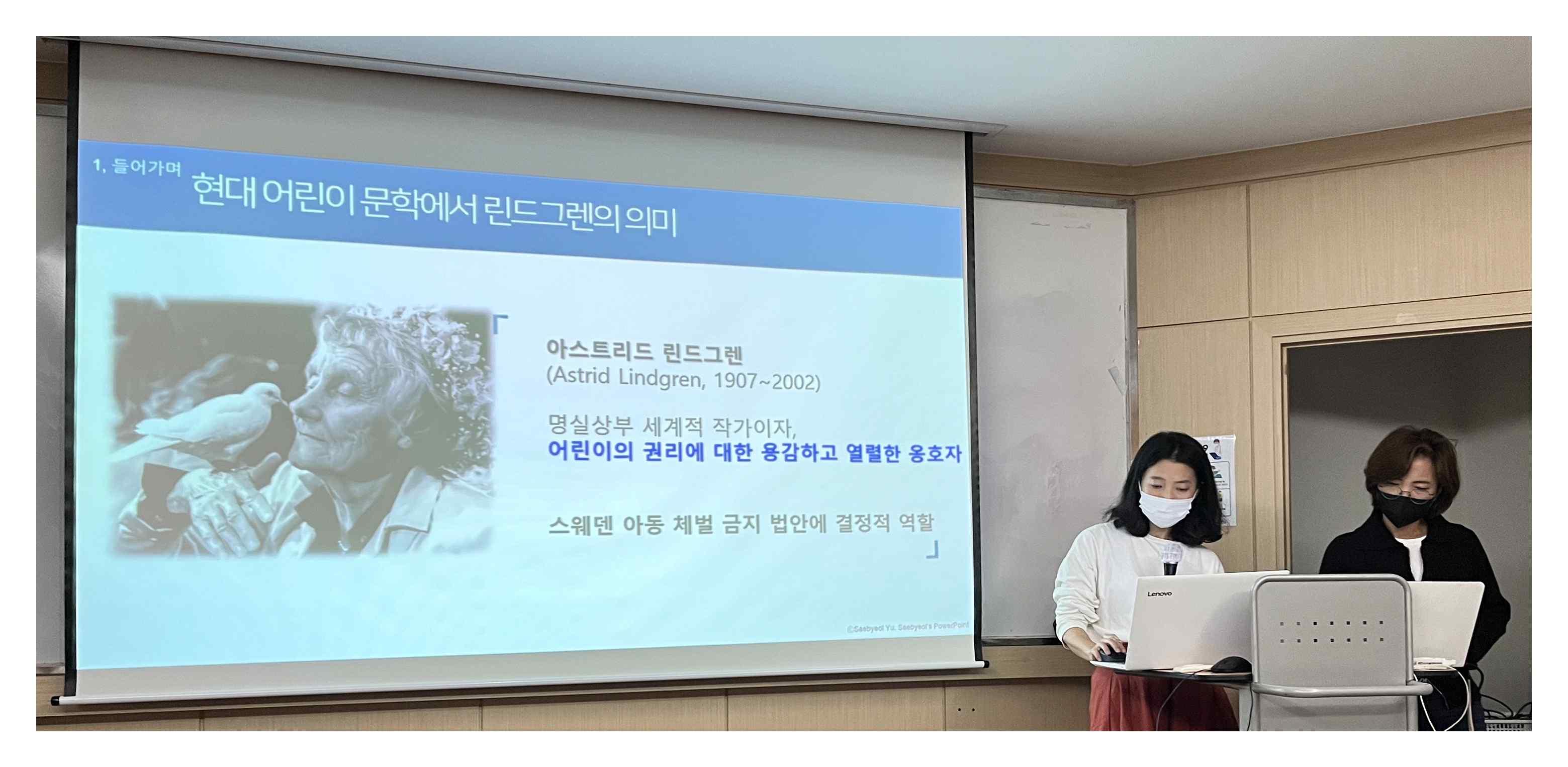 교육부는초반부터할일이많은부서이다코로나로인해2년동안하지못 했던신입회원을모집하기위해강의,강사섭외및올해신입들이공부할책목 록을정해야한다.그리고회원재교육,신입재교육을준비하고,린드그렌작품을 심도있게읽고작품속의어린이들을하나하나만나면서낭독회의의미도함께