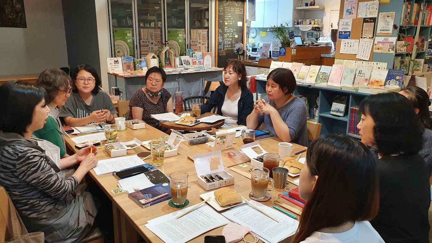 달반은2주에한번저녁시간에대면모임을했습니다.일하느라바쁜분들 이많은데,서로시간맞춰한달에두번은얼굴보며책모임을이어갔습니 다