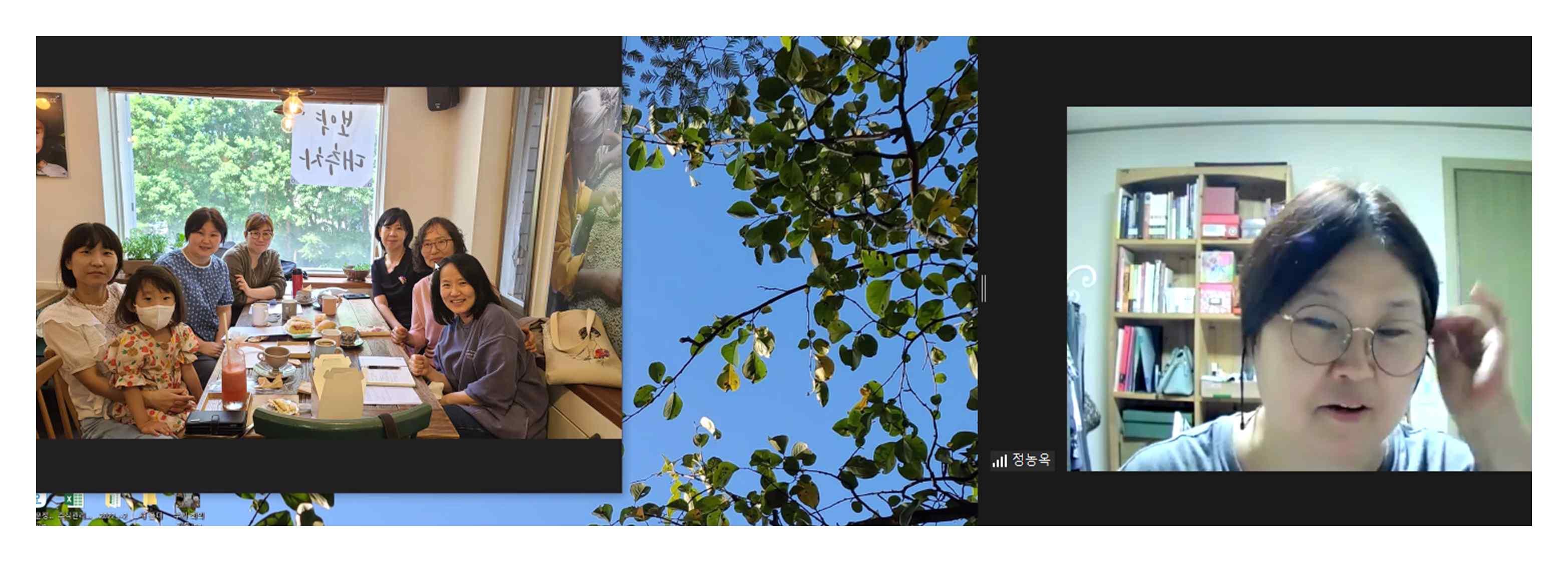 달반은2주에한번저녁시간에대면모임을했습니다.일하느라바쁜분들 이많은데,서로시간맞춰한달에두번은얼굴보며책모임을이어갔습니 다