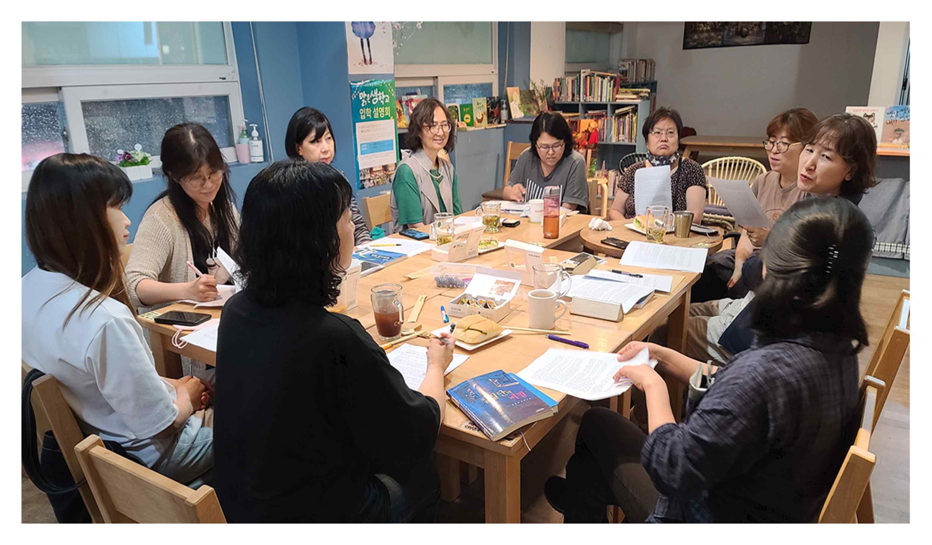 올해의금요일은교육부다.김혜련,박은경,박은주,서윤경,윤희경,이민하, 정영예,정혜숙,한경선그리고2021년에북클럽에서모집된신입회원김은지, 이정순,장서윤이렇게많은인원이함께출발을했다역시인원이많으면무 엇을하든재미나다신구의조화로운토론속에서서로를알아감에감사하고