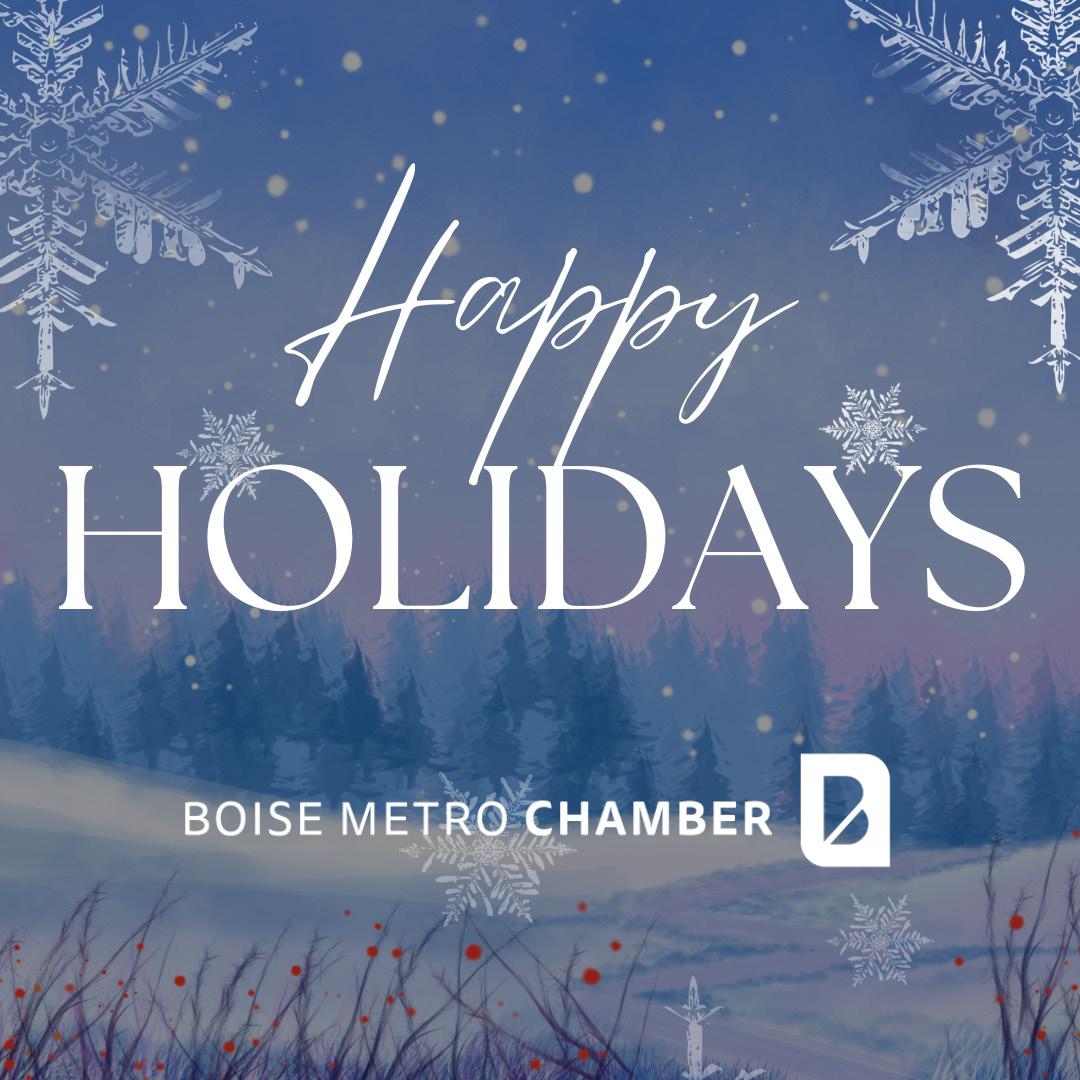 Editorial Office: 1101 W. Front St., Suite 100, Boise, ID 83702 | (208) 472-5205 Boise Metro Connection (USPS 227-520) is published bi-monthly in January, March, May, July, September, and November by Boise Metro Chamber. Copyright © Boise Metro Chamber, 2024. All Rights Reserved. Reproduction in whole or in part without written permission is prohibited. Periodical postage paid at Boise, ID aho, 83707.