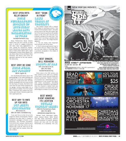 BOISEweekly | SEPTEMBER 22–28, 2010 | BEST OF BOISE: STAFF PICKS | 19