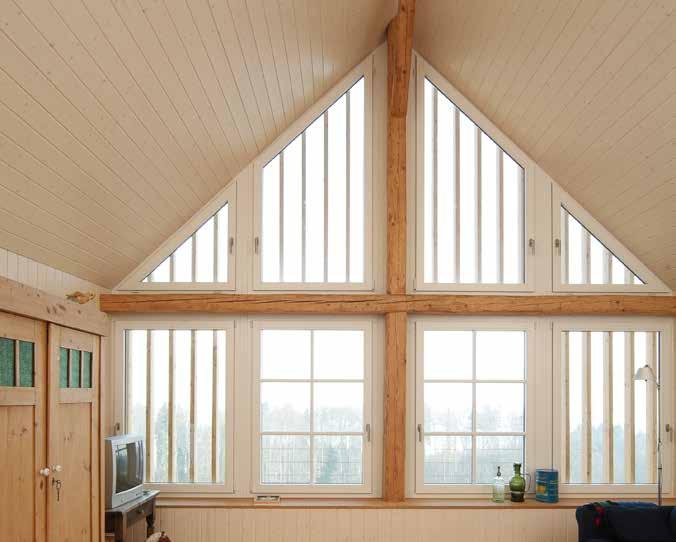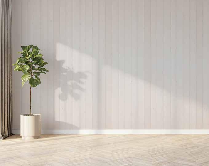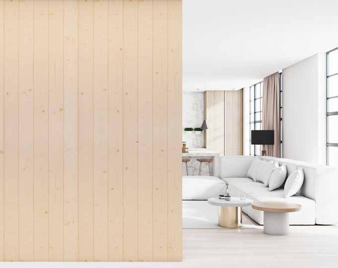 Les panneaux sont composés de trois couches d'épicéa nordique, ce qui leur confère une grande stabilité dimensionnelle. Ils disposent d'un traitement de haute qualité à base d'eau et sont disponibles en série en trois nuances de couleur, du blanc presque couvrant à l'incolore.