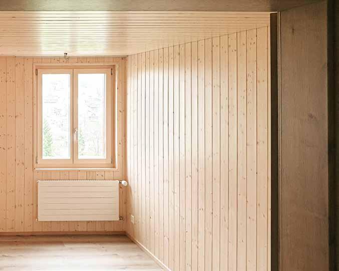 Le bois régule le climat intérieur : le bois est l'un des rares matériaux de construction naturels à pouvoir absorber la vapeur d'eau de son environnement ou à la restituer à un environnement plus sec. Grâce à cette propriété hygroscopique, les différences d'humidité dans une pièce sont très bien équilibrées et agréables. Dans le cas de lambris ou de panneaux traités, il est donc important que la peinture soit perméable à la diffusion, de sorte que cette fonction naturelle du bois ne soit pas entravée.