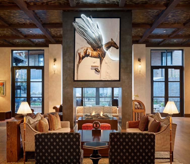 Inspired by the Oklahoma ranch and its surrounding landscape, Canter Hotel tells a story that celebrates the allure of the American West. This unique retreat seamlessly blends the rugged charm of cowboy culture with the grace and heritage of Native American traditions. Canter Hotel celebrates a bygone era of the frontier by encouraging storytelling within the warm embrace of western hospitality. Taking a residential approach, the interiors feel less like a hotel and more like you have entered a well-appointed ranch home that pays homage to the historical authenticity and rustic elegance of traditional Oklahoman ranches. Drawing inspiration from the Mercurial Mare and the spirited gait of the cantering horse, the design ethos encapsulates the essence of Oklahoma’s rich and varied history through a distinctly feminine lens.
