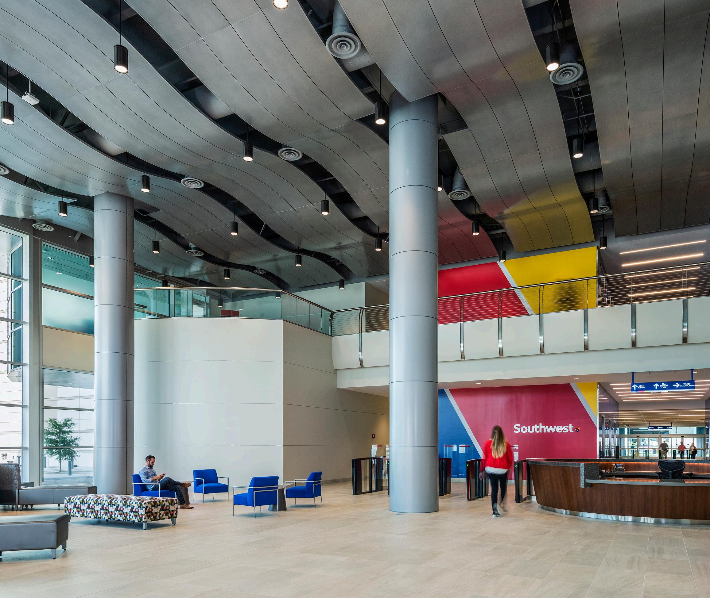 As part of a design-build team, BOKA Powell delivered a 500,000 SF expansion of Southwest Airlines’ corporate headquarters at Love Field in Dallas, Texas. The facility features offices, conference areas and the carrier’s national training center, all designed to foster a unique, collaborative atmosphere for employees. It is also home to a blastresistant operations command center from which the carrier manages flight operations, scheduling, dispatch, and maintenance for its fleet of nearly 600 aircraft. A situation room provides communications and logistical support during emergency operations. Heightened security measures and the hardening of structural and building systems, including redundant electrical and HVAC, will allow Southwest to maintain uninterrupted flight operations during a wide range of natural disasters and man-caused catastrophes. Programming the facility required extensive coordination among numerous divisions and C-level executives to ensure the building supports day-to-day functionality and accommodates logical adjacencies.