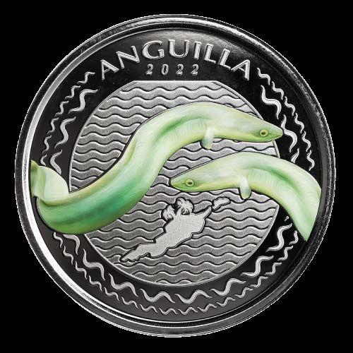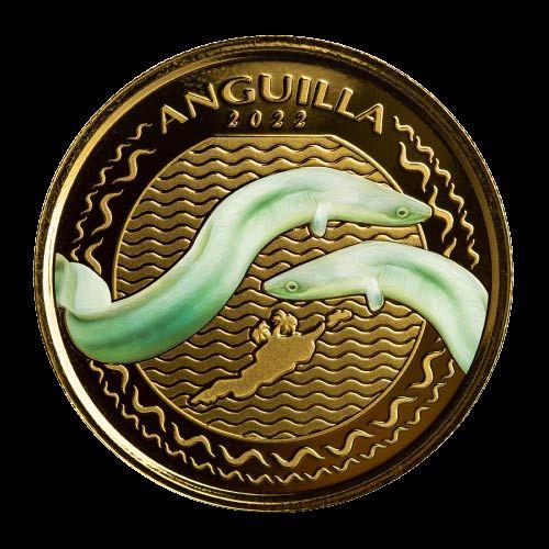 2022 EC8 Anguilla Eel Available in 4 Types at BOLD Precious Metals 1. Gold Proof Colored 2 Gold BU 3. Silver Proof Colored 4. Silver BU