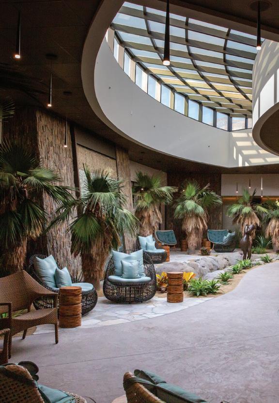 The plaza also includes an Oasis Trail of native plants and rocks, with water features inspired by the tribe’s ancestral lands, and the high-style Spa at Séc-he, which translates to “sound of boiling water” in the Cahuilla language.