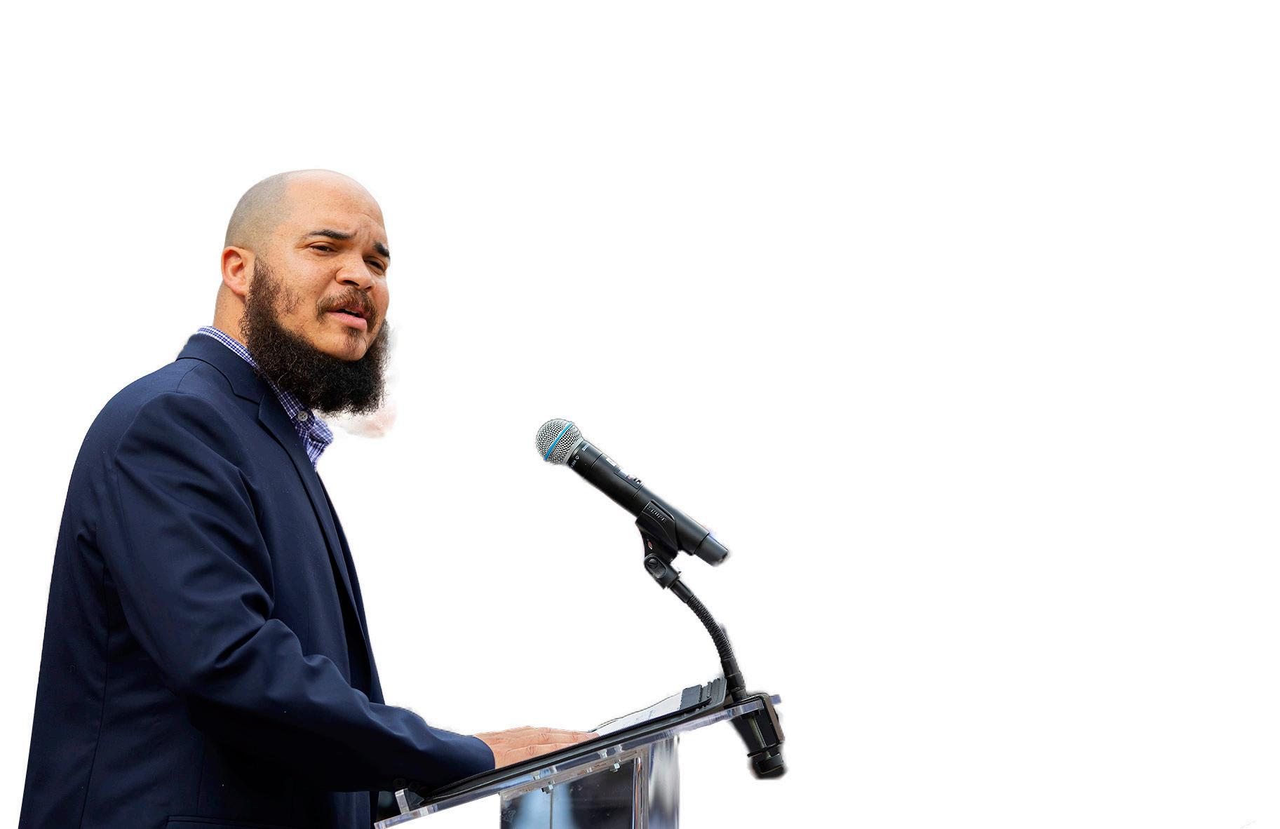 The Rev. Charles L. Howard, C’00, speaks at a 2019 campus vigil following the New Zealand mosque attacks.