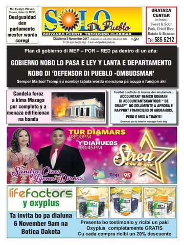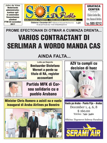 Solo di Pueblo, un corant funda pa Edmond Croes y su famia dia 12 di September 2005. Tabatatin necesidad pa un corant nobo cu por trese un balanse di informacion. Pueblo a sugeri un corant nobo! Di esunnan cu tabata exisiti, mayoria tabata sirbi nan propio interes y tabata practica censura! Solo di Pueblo ta e formula nobo di corant na Aruba, unda TUR grupo den comunidad, sin expecion tin participacion. Dia 12 di September 2023 lo cumpli 18 aña di existencia. Solo di Pueblo ta obtenibel tur mainta na 400 kiosko rond Aruba. Su prijs di benta ta Afl. 1.50.
