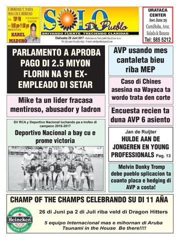 Solo di Pueblo, un corant funda pa Edmond Croes y su famia dia 12 di September 2005. Tabatatin necesidad pa un corant nobo cu por trese un balanse di informacion. Pueblo a sugeri un corant nobo! Di esunnan cu tabata exisiti, mayoria tabata sirbi nan propio interes y tabata practica censura! Solo di Pueblo ta e formula nobo di corant na Aruba, unda TUR grupo den comunidad, sin expecion tin participacion. Dia 12 di September 2023 lo cumpli 18 aña di existencia. Solo di Pueblo ta obtenibel tur mainta na 400 kiosko rond Aruba. Su prijs di benta ta Afl. 1.50.