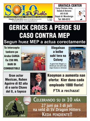 Solo di Pueblo, un corant funda pa Edmond Croes y su famia dia 12 di September 2005. Tabatatin necesidad pa un corant nobo cu por trese un balanse di informacion. Pueblo a sugeri un corant nobo! Di esunnan cu tabata exisiti, mayoria tabata sirbi nan propio interes y tabata practica censura! Solo di Pueblo ta e formula nobo di corant na Aruba, unda TUR grupo den comunidad, sin expecion tin participacion. Dia 12 di September 2023 lo cumpli 18 aña di existencia. Solo di Pueblo ta obtenibel tur mainta na 400 kiosko rond Aruba. Su prijs di benta ta Afl. 1.50.