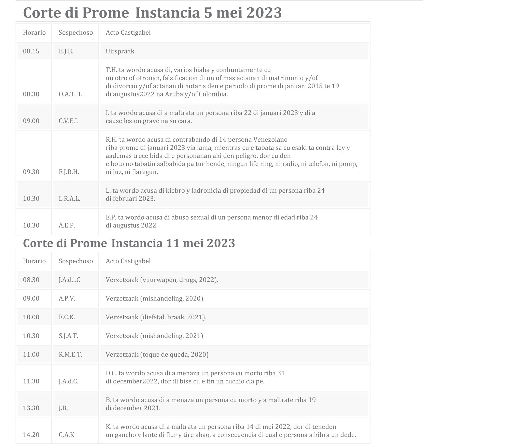 Pagina 28 DIABIERNA 5 MEI 2023 Brandweer 911 Polis 100 Polis Oranjestad 102 Polis San Nicolas 104 Polis Santa Cruz 105 Polis Shaba 107 Tiplijn 11141 Ambulance San Nicolas 584-5050 Ambulance Sasaki 582-5573 Ambulance Wayaca 582-1234