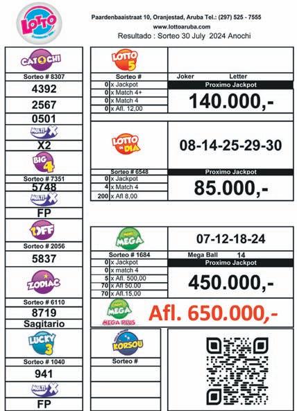 Lotto, E Loteria di Aruba tin diferente wega, Catochi, Big 4, 1-OFF, Zodiac, Wega di Number di Korsou di Lotto, Lucky 3, Multi-X, Lotto