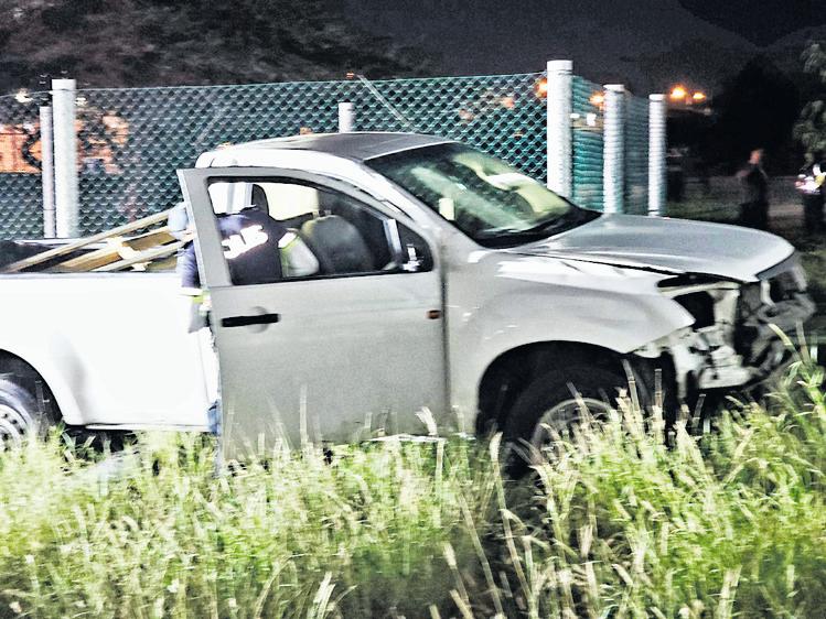Balashi - Diasabra anochi rond di 10'or, algun persona contemplando e decoracion di Pasco dilanti WEB a mira un pickup perde control poco mas pabou.
