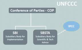 E organismo supremo ta e Conference of Parties (COP) pa e Tratado pa Cambio Climatico, e CMP tawata pa e Kyoto Protocol y CMA pa e Acuerdo di Paris; Ademas tin un organismo pa maneho: the Bureau of the COP, the CMP and the CMA; Dos organismo subsidiario, permanente ta – e SBSTA y e SBI – y algun organismo subsidiario estableci via e COP, CMP y CMA pa atende cu temanan specifico.