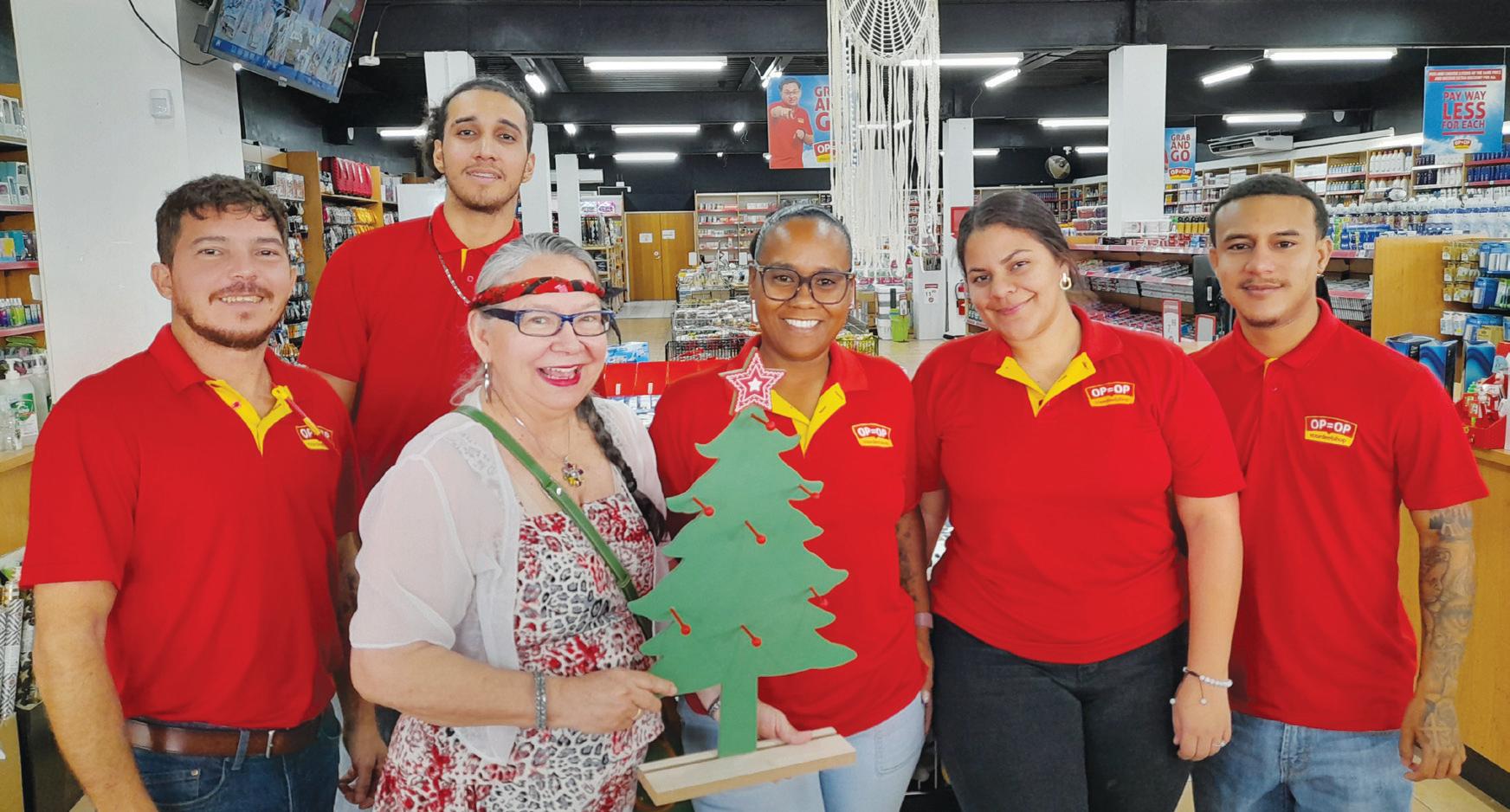 Lady Ruth a drop in na Op = Op riba Sasaki pa busca un kerstboom chikito di hero fini no pisa cu ela cumpra p’e na Op = Op na Paradera, pa hiba un pa su mayornan pa dorna nan kamber, un kerstboom cu no ta garna, pero no tawatatin na Op = Op na Sasaki. Pero, e bunita y simpatico Yeilis a comunica cu otronan den Op = Op Sasaki y a bin ta regala Lady Ruth un kerstboom berde chikito di palo cu lugar pa colga 7 bala, oh asina cute riba su stand. Un size perfecto pa fit ariba e kashi den kamber di su mayornan, cu dia 28 di November 2024 a cumpli nan di 71 aniversario di boda, cu nos a celebra intimamente den famia cu yuinan y nietonan den un dushi forma cu dushi ambiente familiar. E anja anterior cu nan di 70 aniversario nos tawatatin bishita di dos di nos dushi hendenan, Pastor Jairo y nos flamante ministro di cultura sra.