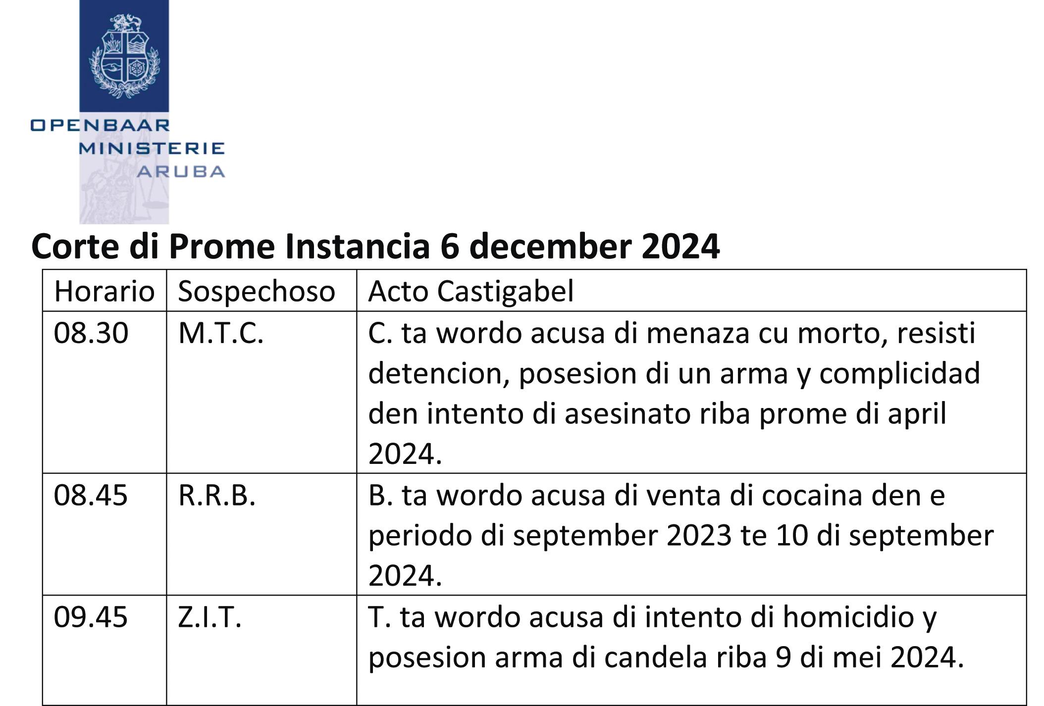 Despues cu e sospechosonan a hiba palabra, Hues a bisa cu mirando e magnitud di e caso, otro aña 21 Januari 2025, pa 8.30 di mainta e lo sera tratamento di e caso.