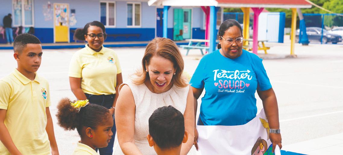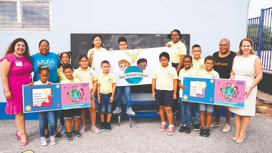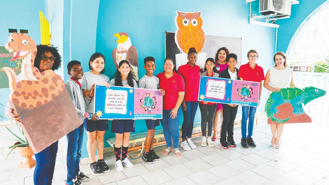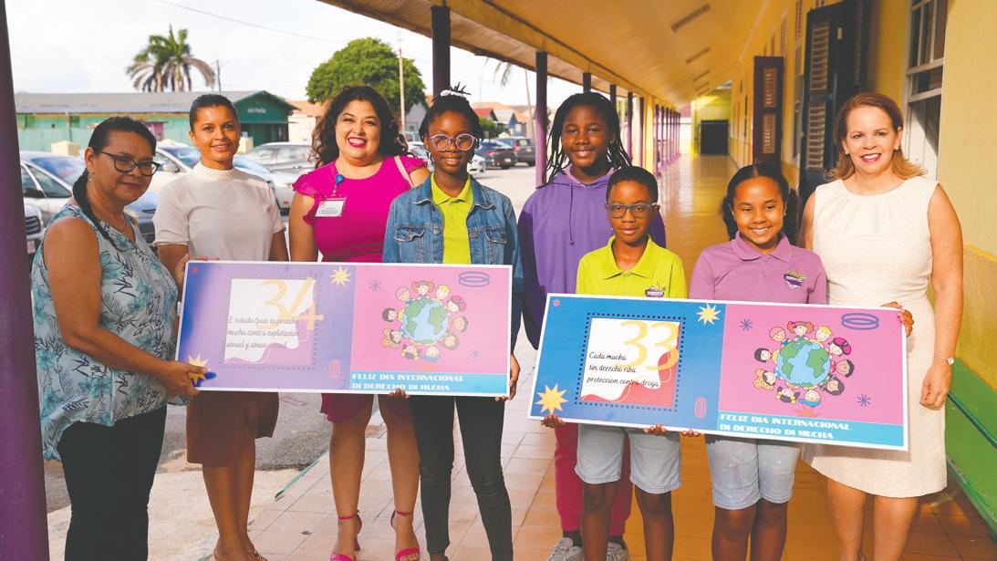 Caya Betico Croes. Prome Minister Wever - Croes conhuntamente cu sra. Michella SteenvoordeLacle cu ta coordinador di e proyecto, a bishita varios scol pa asina entrega e banners di e articulonan cu e scolnan ta bay carga durante di e marcha. Ademas durante di e bishita, Prome Minister a splica untiki di kico e articulo ta encera y kico e derecho di mucha cu e scol ta bay carga ta nifica. Unabes cu e marcha termina y sali for di Caya Betico Croes, e ta caba riba Plaza Padu caminda cu e scolnan por haci un presentacion (poesia, cantica, obra teatral) di e articulo cu nan a carga. Invitacion ta bay pa tur scol pa participa y pa tur mayor y demas studiante cu no ta participa na e marcha, bin mira y sostene e derecho di nos muchanan. ‘Nos muchanan ta wak nos como adulto pa nos protege nan. Pa nos percura cu nan no ta den peliger y percura cu nan no ta wordo abusa. Pero mas aun nan ta wak nos cu e speransa y confiansa cu nos tey pa haci nan feliz. Esaki ta un dia pa nos tur bin hunto y mira kico mas nos por haci pa garantisa e siguridad, proteccion y felisidad di nos yiunan.’