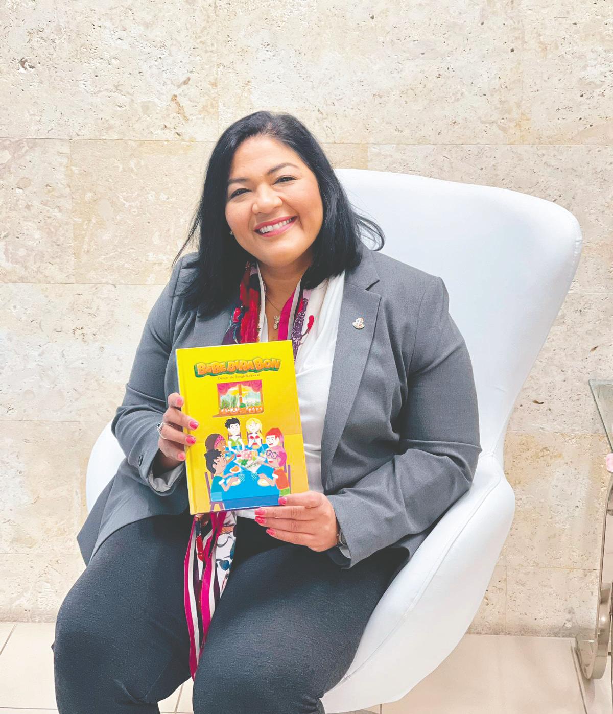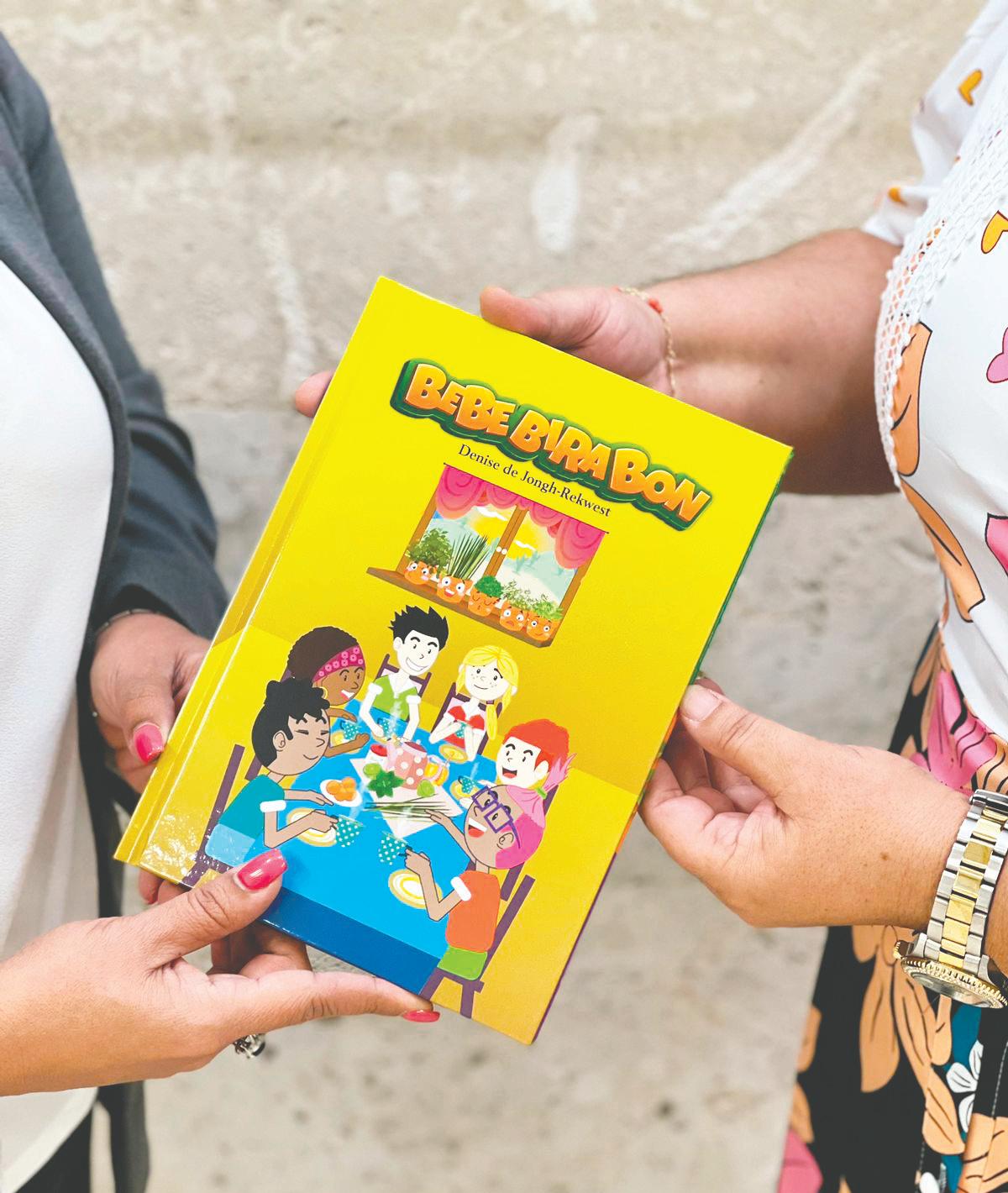 Xiomara Maduro, a ricibi un copia di e buki ‘Bebe Bira Bon’ for di e escritora Denise de Jongh-Rekwest. Esaki en conexion cu Festival di Buki pa Mucha 2022 cu ta ser celebra e siman aki. E tema cu a