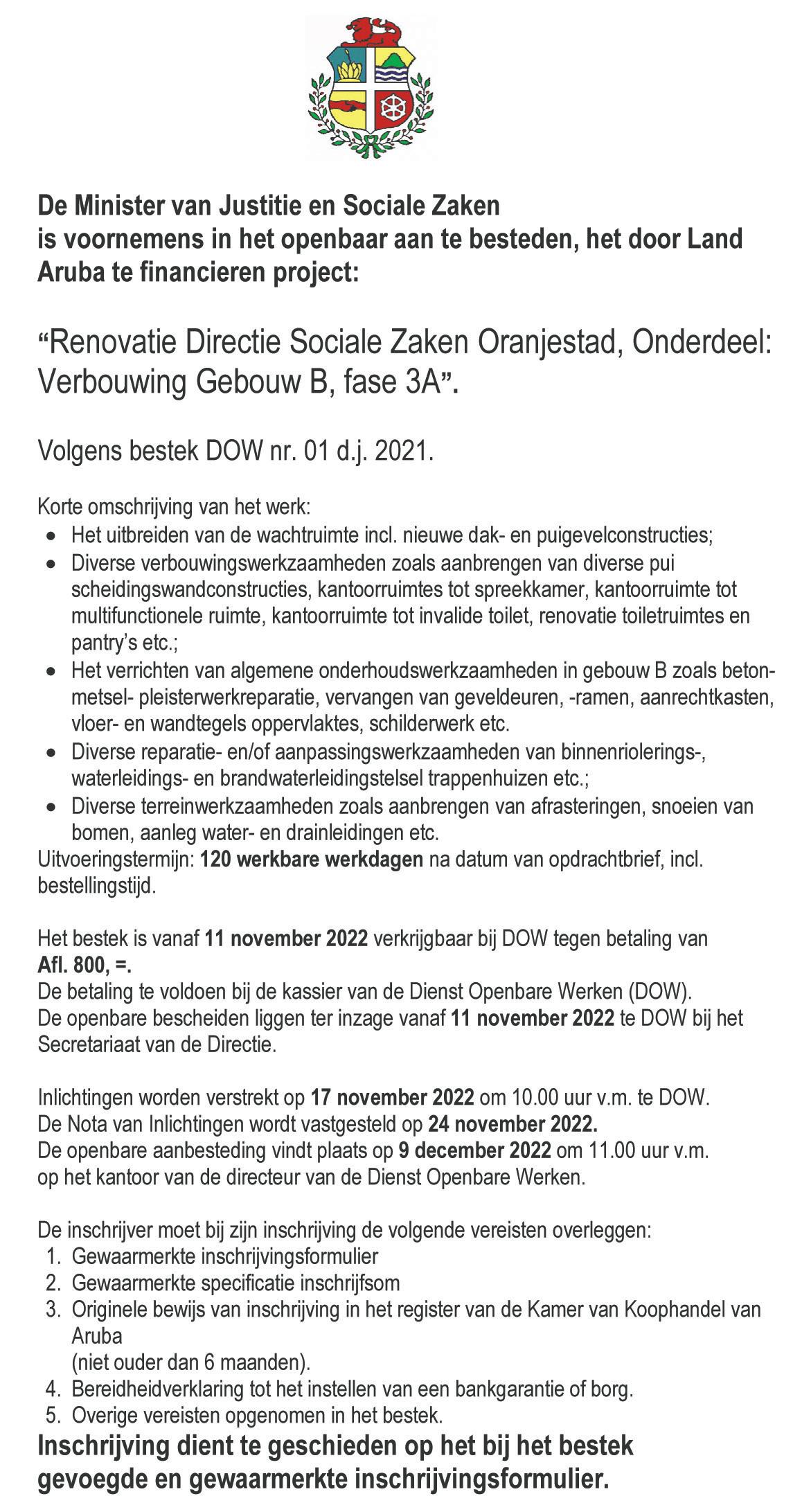 Minister Endy Croes a indica cu e ta un inversion di alrededor di 65 mil florin. ProNova ta e compania encarga cu