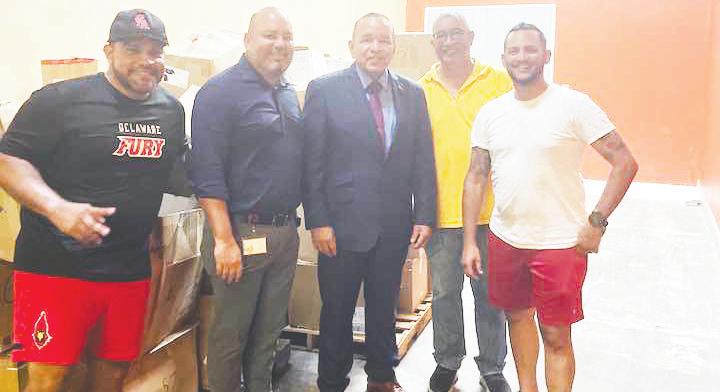 : Dialuna mainta Minister Endy Croes, ex- MLB pitcher di ekipo Baltimore Orioles, Calvin Maduro hunto cu Charitable Foundation OACF den comunicacion y trabou estrecho cu Gobierno di Aruba a logra baha un container di 20 pia mas cu 50 mil Dollar na materialnan deportivo. Tanto material nobo y segunda mano di baseball, softball y algun di futbol.