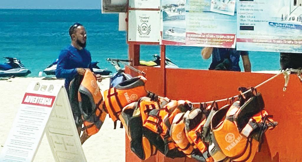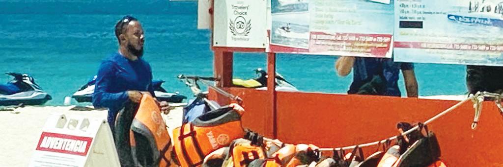 eynan cu slof na pia y jeans bisti y a subi 2 waverunner y nan a bay cu esakinan sin paga. E empleado a bisti un vest y a bay nan tras.