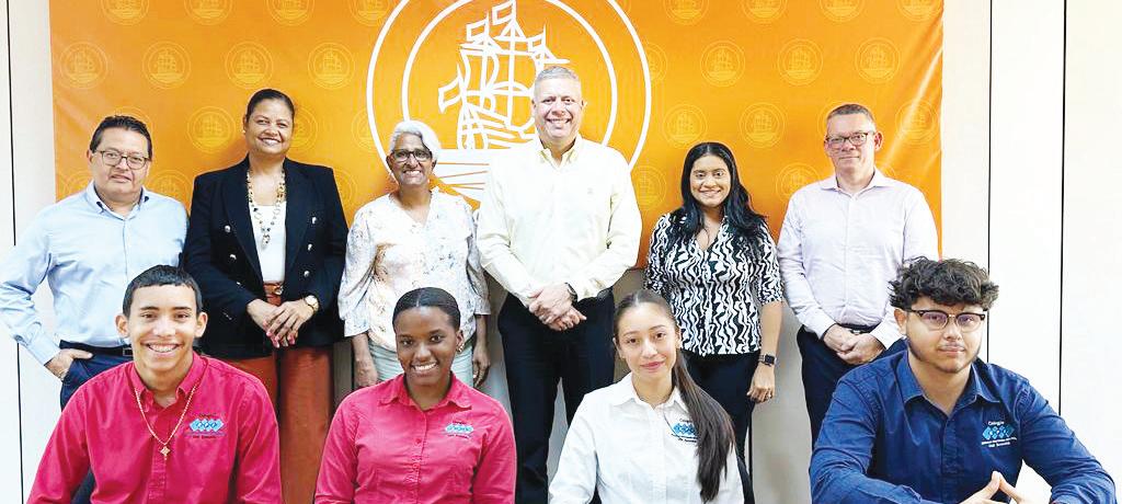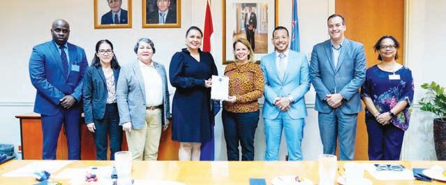 Sra. Sharine Hart, Sr. Corporate Account Manager di Banco di Caribe Sr. Jorge Yarzagaray hunto cu Luis Croes, Tanesha Gill, Julissa Bouwman y Egor Wernet.