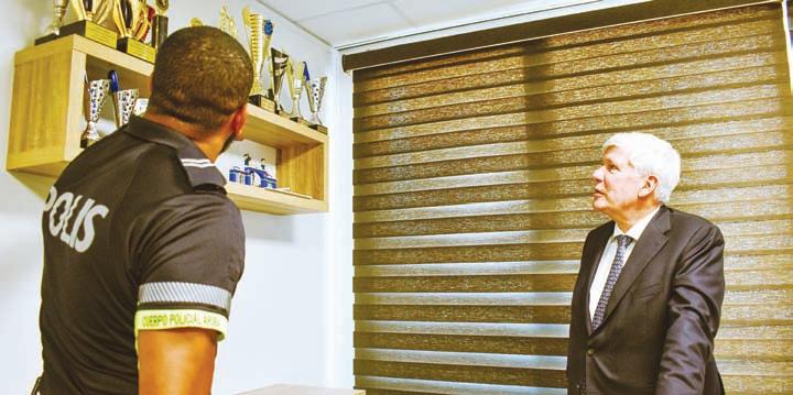 “Pa prome biaha mi ta bin bishita Aruba y su Cuerpo Policial. Hendenan amabel cu respet desde e momento cu mi a pone pia riba e pais aki. Agentenan alegre pero cu hopi smaak pa traha apesar di cualkier circunstancia, nan ta haci e trabou aki cu hopi pasion y dedicacion. Pero tambe e encuentro aki tabata di sumo balor na unda nos a elabora con nos por traha mas di cerca hunto riba diferente tereno. Mi tin pleno confiansa cu e relacion positivo aki entre ambos organisacion.”