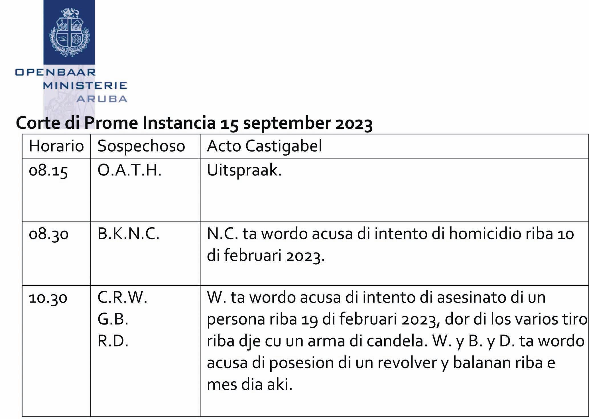 VALIDO TE DIABIERNA 15 DI SEPTEMBER 2023, 18:00 ORA