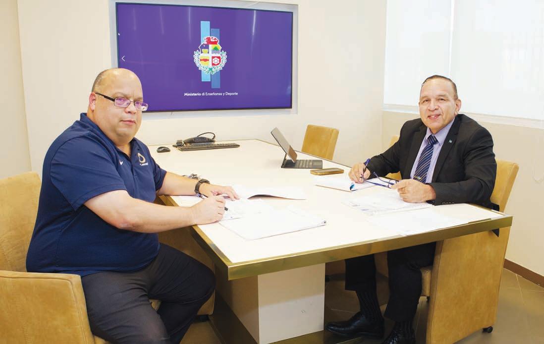 Recientemente, Minister di Enseñansa di Deporte Endy Croes a reuni cu director di Dienst Openbare Werken (D.O.W.) Sr. Marlon Croes hunto cu su team. Durante e reunion a dialoga tocante preparacion di speelplaats pa algun scol cu mester a haya asfalt, entre otro, Sint Aloysius School. Manera ta conoci, Sint Aloysius School ta den proceso di renobacion y ta pushando pa aña escolar binidero nan por drenta e edificio nobo. Ta planifica pa luna di e juli DOW basha asfalt nobo. Colegio Laura Wernet tambe ta riba lista pa haya asfalt, mirando cu nan speelplaats ta den mal condicion.