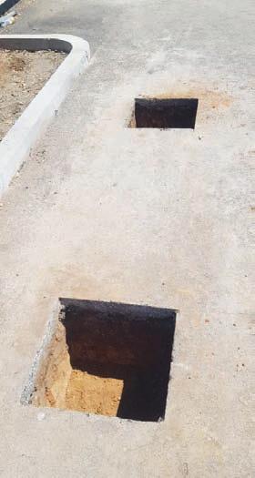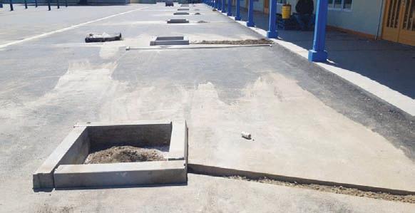 awa di Sint Aloysius School pa percura pa awa sali banda di pariba y a traves di un tubo nobo conecta esaki na e rooi existente y garantisa pa awa no keda para riba e speelplaats di scol mas. A ranca e asfalt cu tabatin por completo pa despues egalisa e fundeshi.