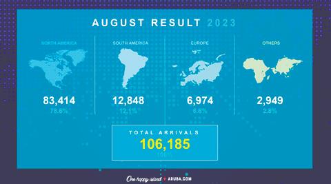 pa luna di augustus 2023 a drenta. A ser demostra un biaha mas den luna augustus 2023 cu e cifranan a surpasa e nivelnan di mesun luna di aña 2019. Den luna di augustus Aruba a ricibi 106,185 turista via nos aeropuerto. Un cresemento di 10.5% den comparacion cu luna di augustus 2019. Esaki ta un recuperacion di 107% den comparacion cu augustus di 2019 cu Aruba a ricibi 96,100 bishitante. Locual a resalta den e ra-