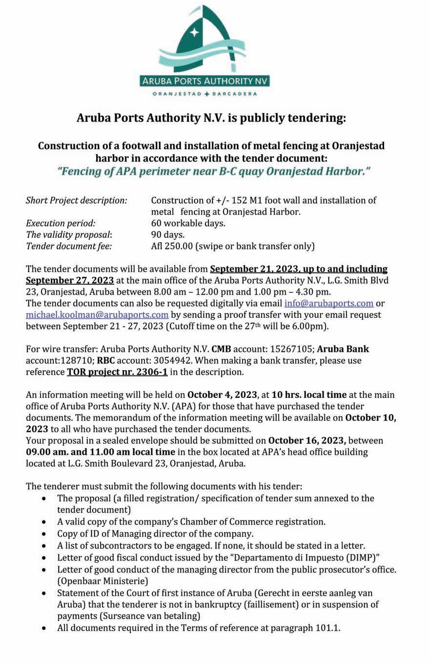 Oranjestad, 20 september 2023