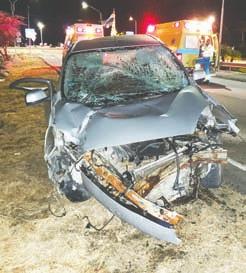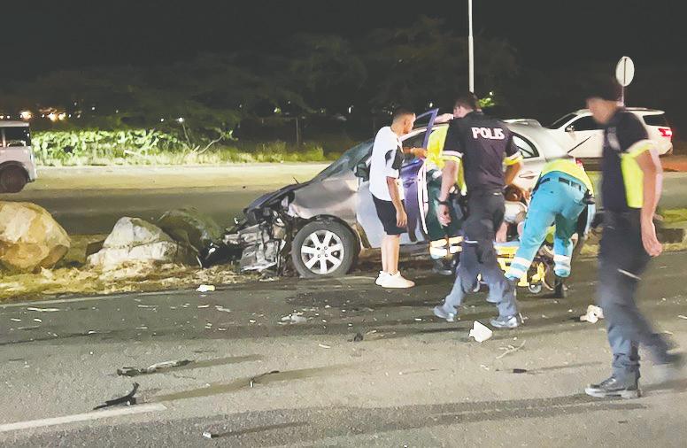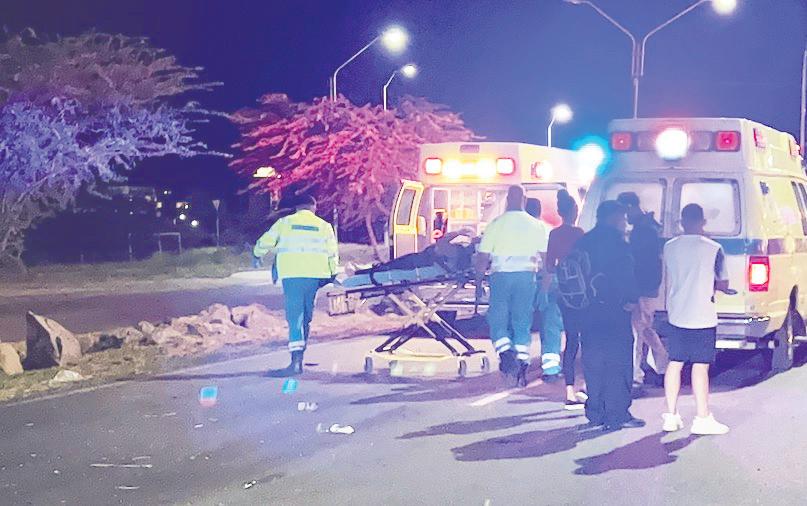 Tabata diahuebs den careda di 1or marduga riba Av Nelson Oduber ex Sasakweg net yegando e rotonde pega cu superfood a sosode un accidente fuerte unda un nissan march maneha pa un dama, a perde control baha caminda bolter cu e auto ranca borchi dal den baracanan y e auto a cay bek riba su cuatro wielnan. E impacto tabata fuerte, e personanan den e auto a resulta herida y otro cu pia fractura.