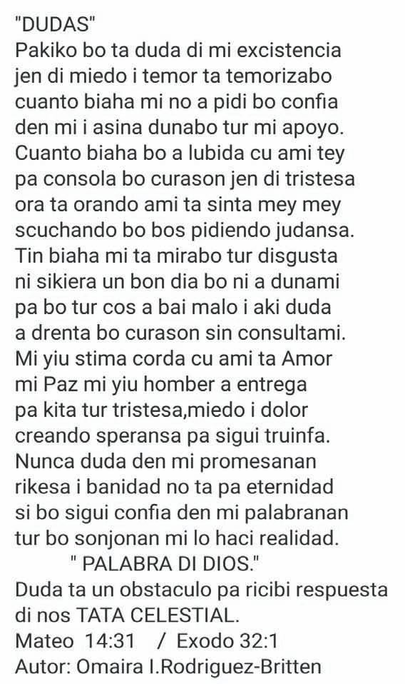 Y asina confia den Señor, pasobra solamente den nomber di Cristo Hesus nos lo tin e victoria.