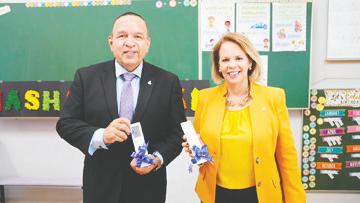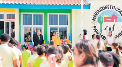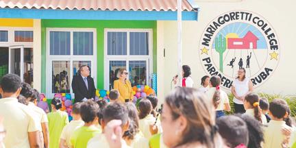 Maria Goretti College na Paradera pa cende e airconan nobo na scol pa prome biaha. Cabesante Mirla de Cuba y su staf a duna Minister President y Minister Endy Croes un caluroso bonbini.