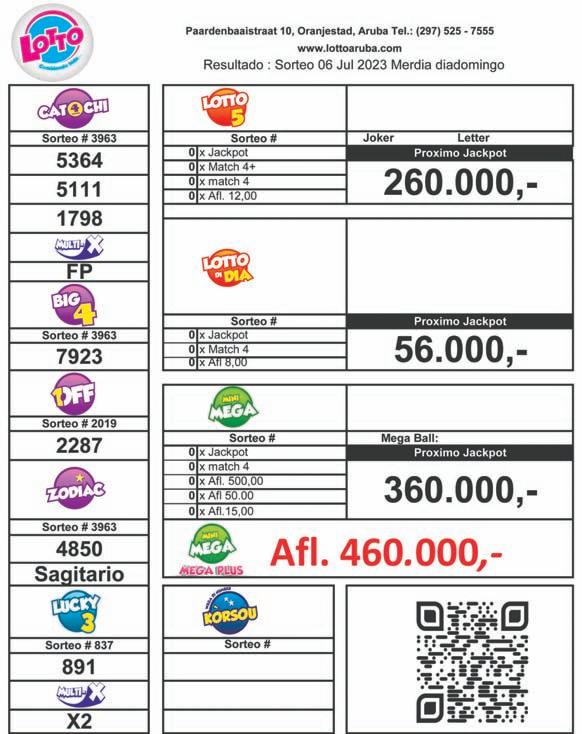 Premionan ta wordo anuncia dia 15 di Augustus 2023. Tira e coupon aki den buzon na oficina di Solo di Pueblo na Sta Cruz 110, solamente entre 2or di atardi cu 4or di atardi.