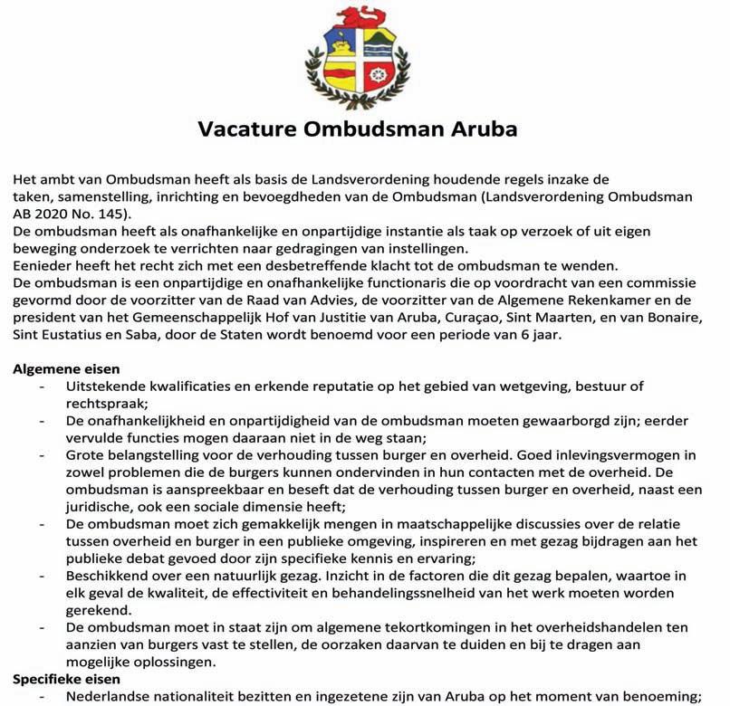 lo mantene tambe un otro parti supervision localmente na Aruba.