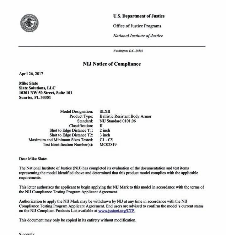 Adicionalmente, por wak un otro carta di un instituto independiente di Merca, e National Institute of Justice, den cual nan tambe ta mustra cu e vestnan a wordo getest, pues e vestnan aki a haya e “keurmerk” di e instituto aki, kende ta para tras di e garantia. Banda di esaki, e ta importante pa splica cu e instituto aki no ta in un instituto cualkiera, e instituto aki ta afilia na e US Department of Justice, pues e