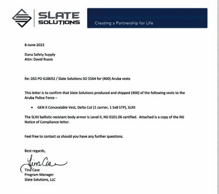 ta esun corecto. Den e caso specificamente di e bulletproof vestnan cu a wordo cumpra, e ta sumamente importante pa percura cu esakinan ta cumpli cu cierto calidadnan. Riba e carta adhunto, por wak cu e compania cu a provee e vestnan aki, ta para tras di e calidad, y tambe por wak cu e vestnan ta cumpli cu tur e rekisitonan y normanan internacional, pa loke ta provee e proteccion na nos Agentenan Policial.