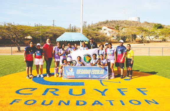 ORANJESTAD: Diaranson atardi, a tuma luga competencia di Weganan Escolar 2023 den e disciplina di Futbol di Categoria B di Mucha Muhe na Cruyff Court Denzel Dumfries. E partido final pa e titulo di campeon tabata entre Pius X School y Fatima College. Pius X School a gana e wega cu e score di 7-0 y asina titula campeon di Futbol B Mucha Muhe di Weganan Escolar 2023. Fatima College a sali sub campeon di e campeonato escolar di Futbol Categoria B di Mucha Muhe. Na di tres luga a keda Colegio Sagrado Curason y na di cuater luga Maria School.