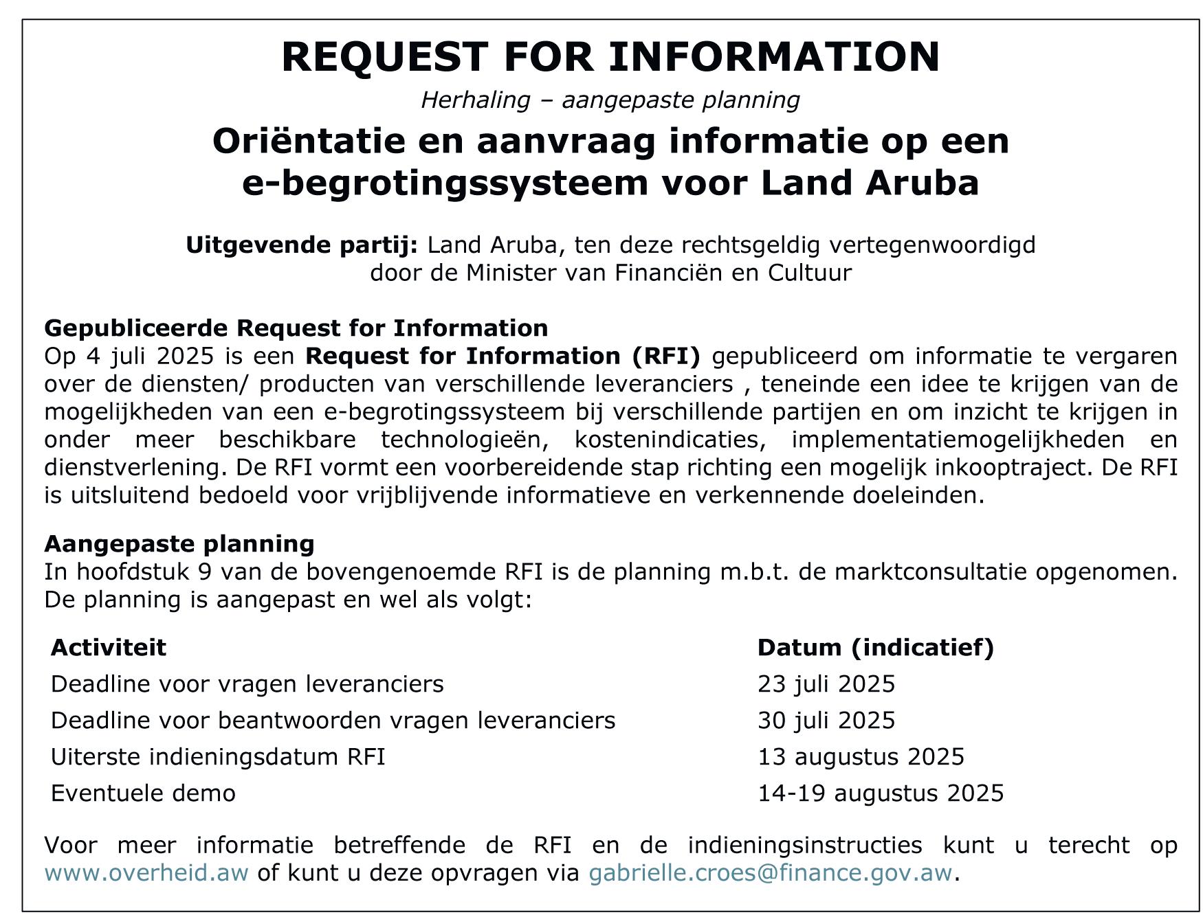 Pa mas informacion por manda un email na: communications@cbaruba.org Banco Central di Aruba 15 di juli 2025