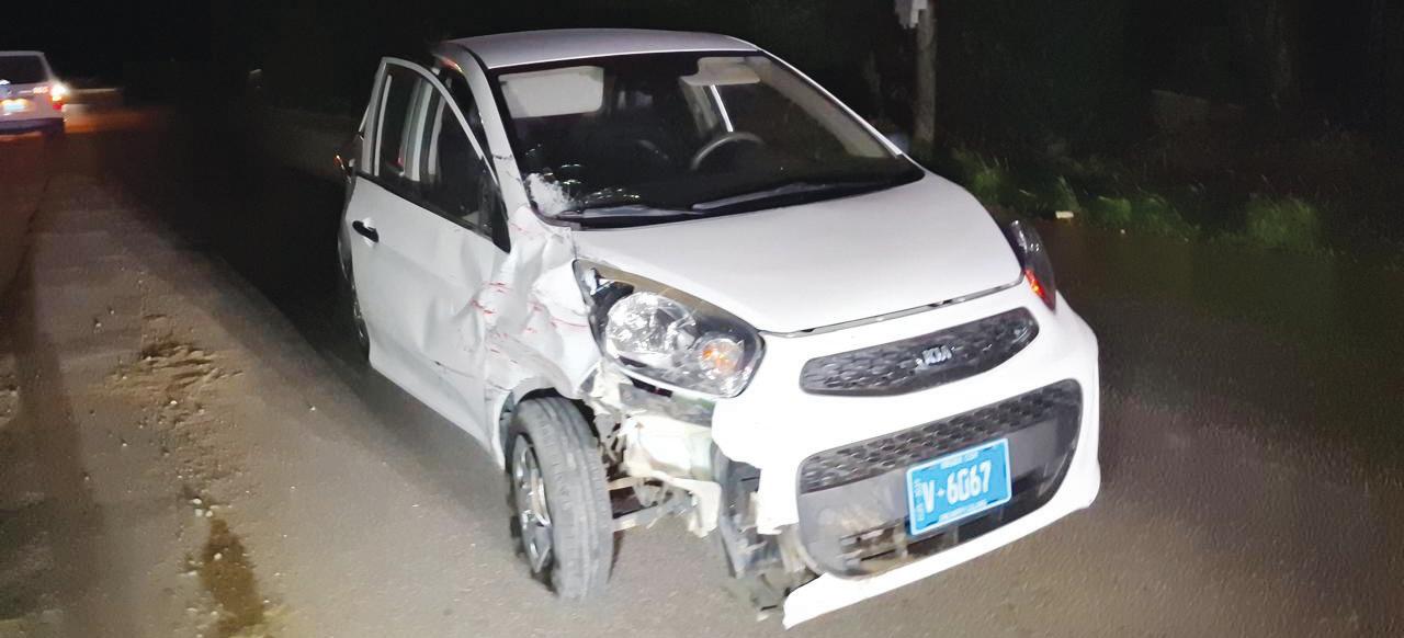 na e sitio. Na yegada di e patruya a bin compronde cu aki ta trata di un accidente unda un dama chauffeur poco cansa di un auto di huur a baha caminda dal un auto staciona banda di caminda. Polis a purba controla