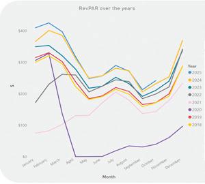 E proyeccion actual pa ocupacion averahe di hotel na 2025 ta 77%,