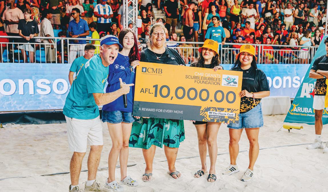 Caribbean MerCantile bank n .V. ta yuda SCubblebubbleS Foundation Cu un donaCion di aFl. 10,000 durante aruba open beaCh tenniS tournaMent