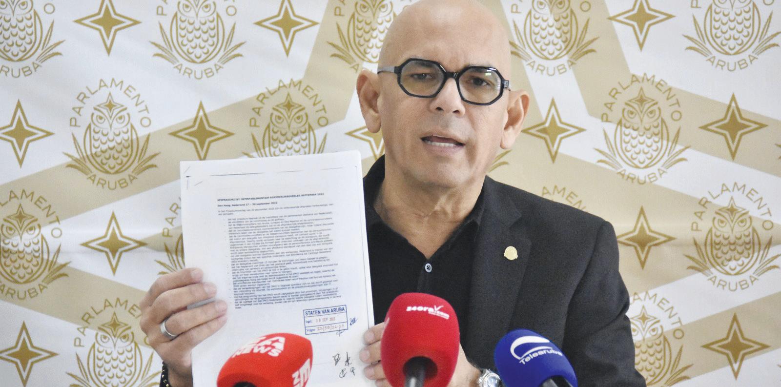 For di 30 di januari, Otmar Oduber, lider y miembro di Parlamento pa fraccion di PPA, a insisti riba un reunion publico pa tin transparencia y debate riba e asunto di Rijkswet. E peticion ey tabata basa riba compromiso cu a haci den IPKO di 2022 y preocupacion cu gobierno lo mina e rol di Parlamento. En vez di claridad, Parlamento y pueblo a keda cu confusion, wega politico di ken tin mas culpa y un silencio peligroso di esunnan na poder. PPA su mensahe ta cla: basta cu polarisacion, Aruba mester uni den un solo Frente Nacional pa defende su autonomia.