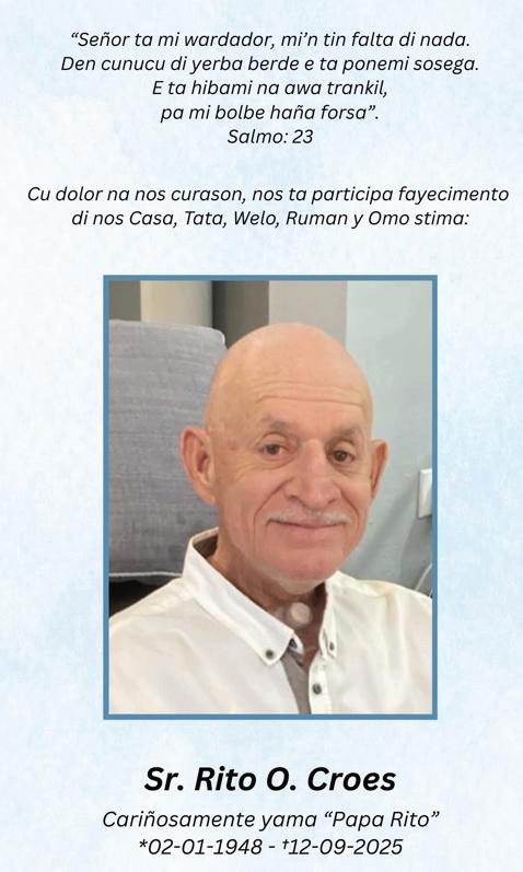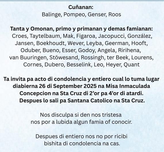 Ta gradici tur dokter y asst. pa nan atention y bon cuido cu semper nan a brinda pa nos, na un y tur cu a yama, message y manda flor. Tambe na Aurora funeral Home pa cu su bon servicio y atención.